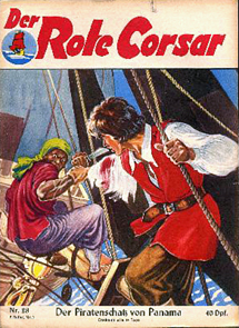 Der Serientitel ist insoweit etwas missverständlich, als dass „Der Rote Corsar“ nicht der Kapitän eines Piratenschiffes ist, sondern der Name des Schiffes, auf dem die jugendlichen Helden Hans Curtis und Michel Goede (sic!) auf Piratenjagd(!) gehen.