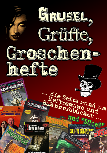 Weil es nicht immer reicht, ein Thema oder eine Serie auf groschenhefte.net zu archivieren - das würde dem einen oder anderen Thema einfach nicht gerecht werden. Und manches gerät sonst ins Hintertreffen, wenn es etliche Zeit dauert, bis die Homepage aktualisiert ist. Die FB-Fanseite "Grusel, Grüfte, Groschenhefte" wird daher eher die Homepage ergänzen und keinesfalls ablösen. Diese "alte Webseite" wird es also auch wieterhin geben ...
